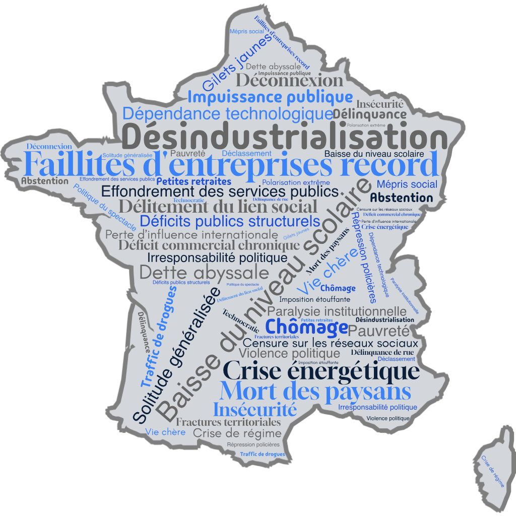 La France traverse une dégradation qui n’a plus rien d’épisodique. Dette, fragilité budgétaire, désindustrialisation, déficit commercial, recul des services publics, précarisation sociale, difficulté croissante d’accès au logement : ces problèmes ne relèvent pas de domaines séparés. Ils forment un ensemble.