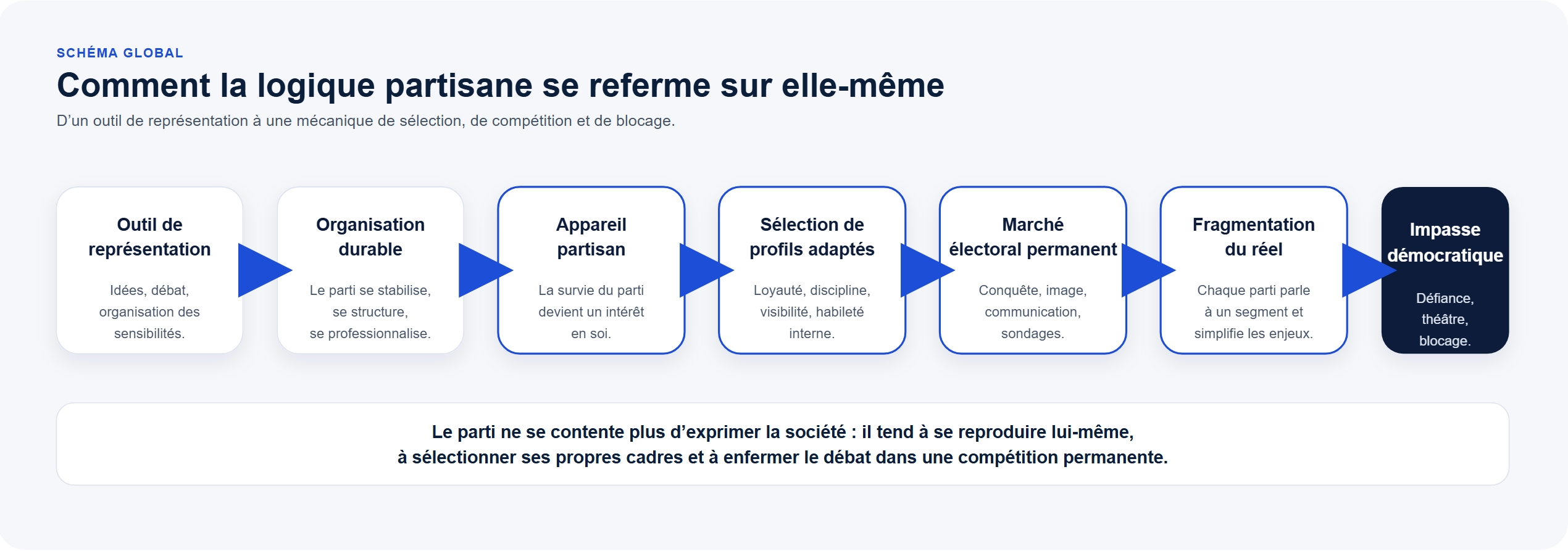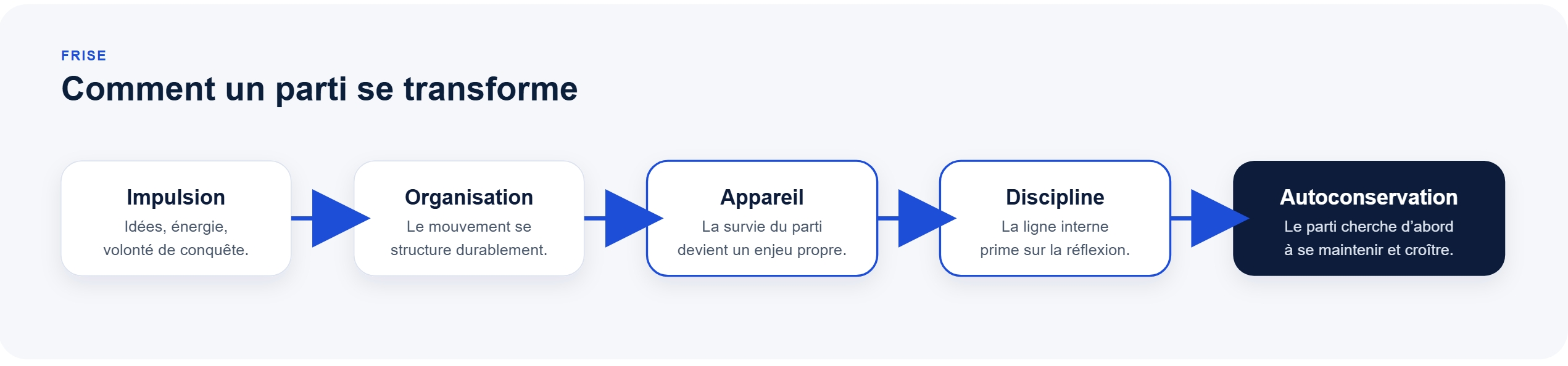 Un parti commence comme un outil ; il tend souvent à finir comme une organisation qui cherche d’abord à se reproduire.